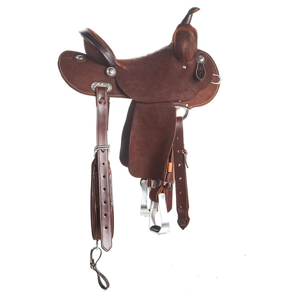 The Burns Saddlery presents a remarkable 14 1/2 Inch 20HDX Chocolate Roughout Barrel Saddle, featuring a 14 1/2-inch hard seat and a 3 1/4-inch tall horn. This saddle is equipped with HDX, offering the highest rise to keep riders’ hips rolled back, ensuring a deep and wide pocket with a 4 3/4-inch cheyenne roll cantle. The saddle comes with a 20 tree, which is a standard Quarter Horse Tree and is made of chocolate roughout leather with a round skirt. It also includes aluminum barrel stirrups, and it is entirely handmade in Salina, Utah. The product number for this amazing saddle is BR-3000-145-20-HDX.