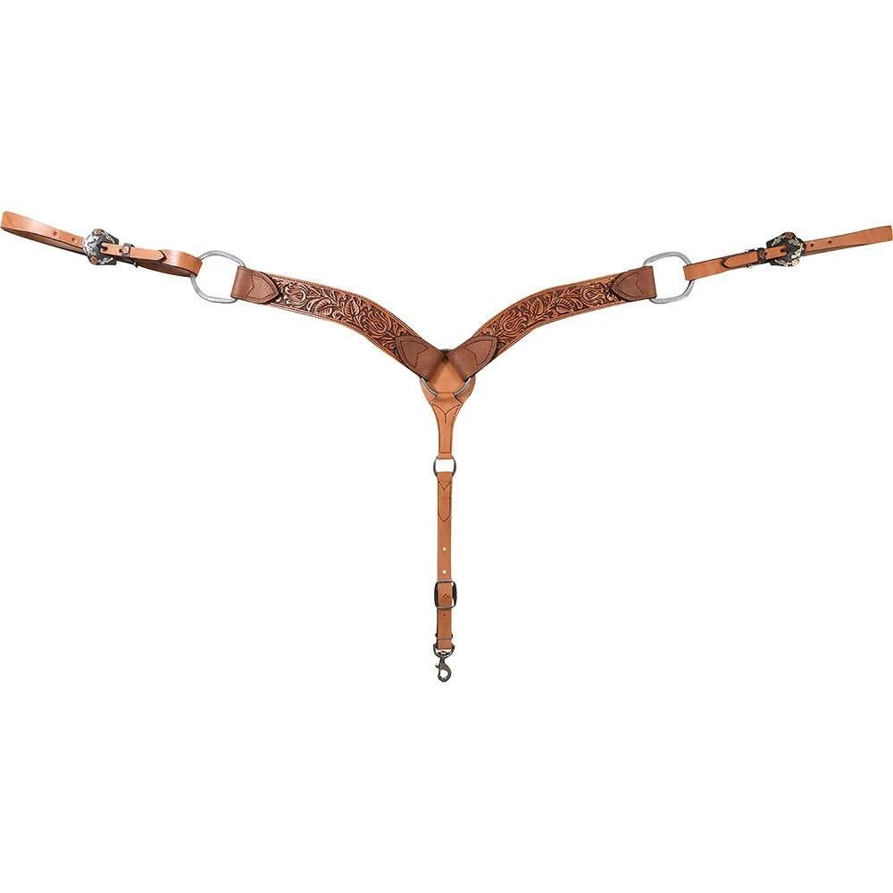 3 piece breast collar with Desert Flower Tooling and Guns and Roses Buckles.