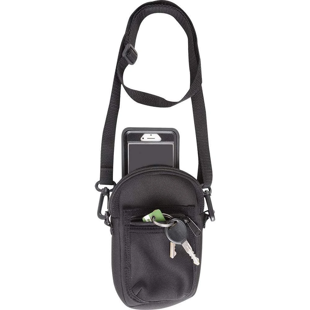 Made of water-resistant neoprene, the Phone Holder can be worn multiple ways, on you or your saddle. Small zipper pocket on the front holds keys, cards or cash.