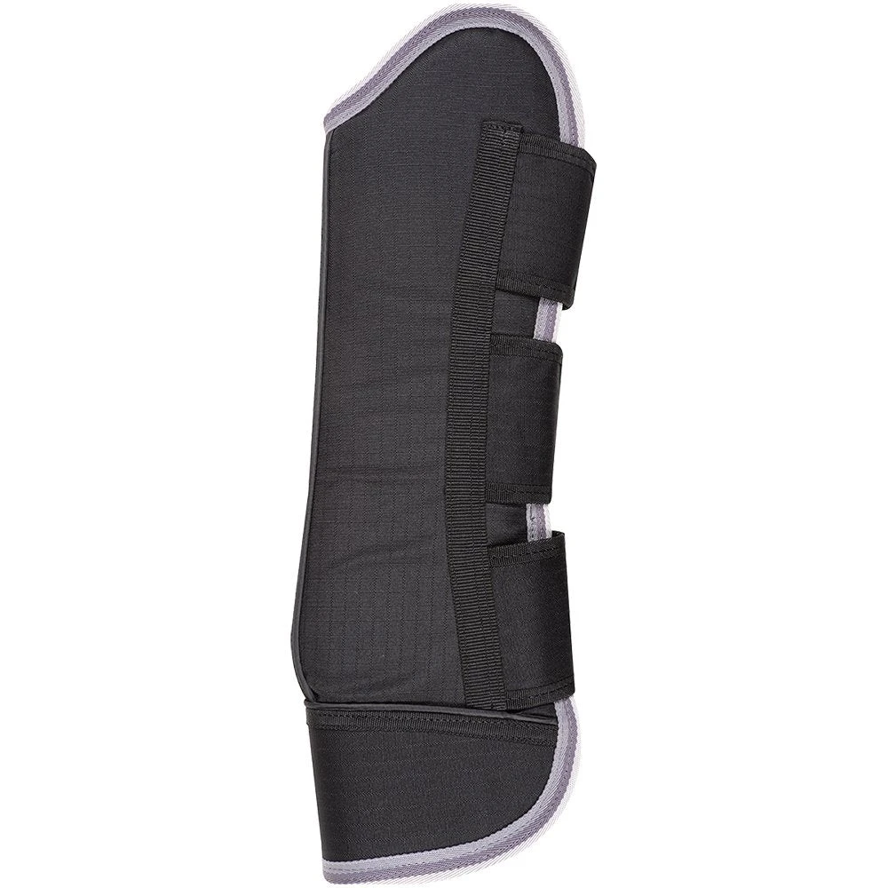 The Classic Equine shipping boots protects the horses legs during travel. Hard outer shell over the hoof with padded interior. Front boots extend from above the knee to the hoof and secure with hook-and-loop straps, allowing for mobility around the knee and external protection. Hind boots extend above the hock to the hoof and secure with hook-and-loop staps, with 2 large crossover staps at the top. Set of 4. Sizes: Medium and Large.