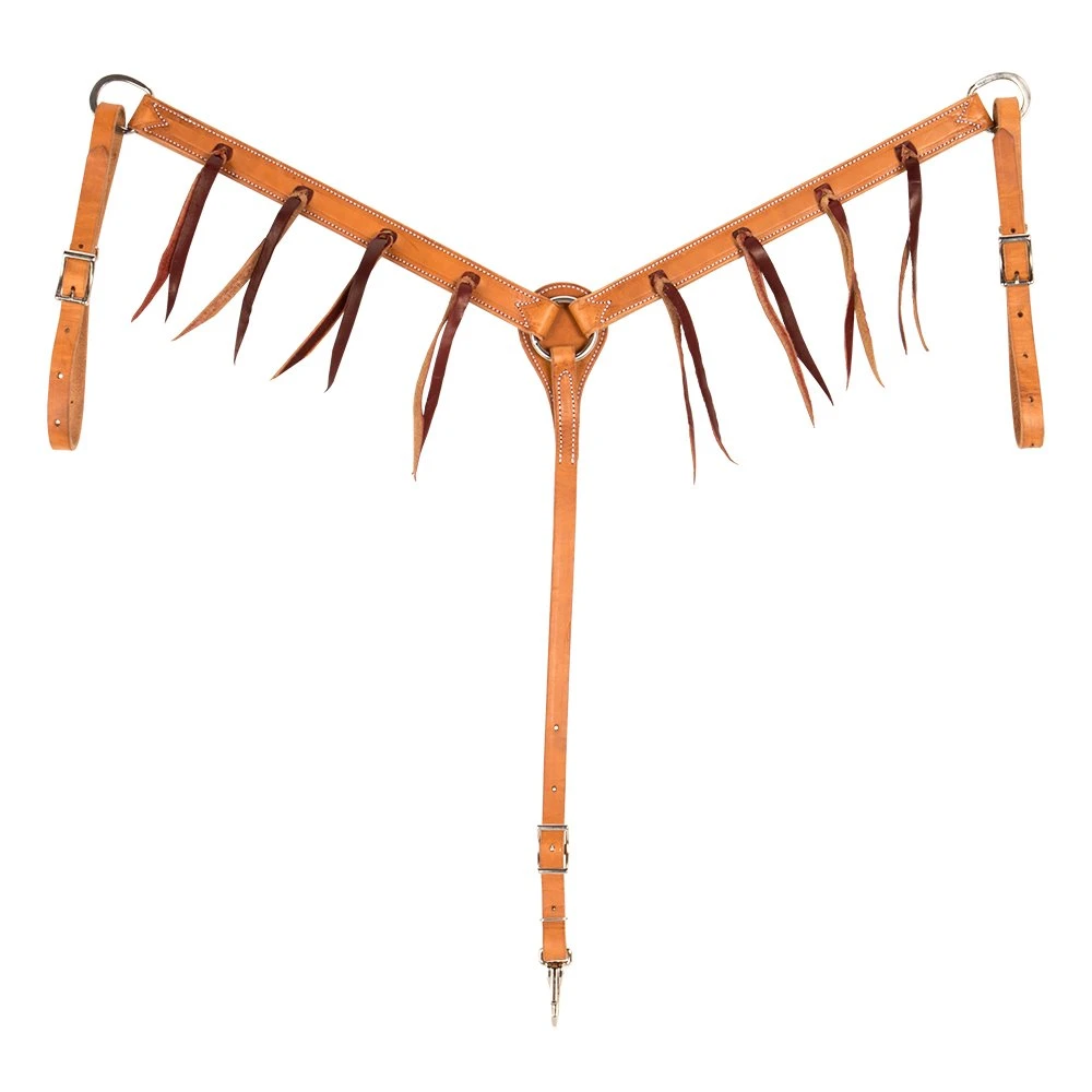 This is a beautiful harness leather breast collar with latigo strings. The breast collar is 1-1/4 inch.
