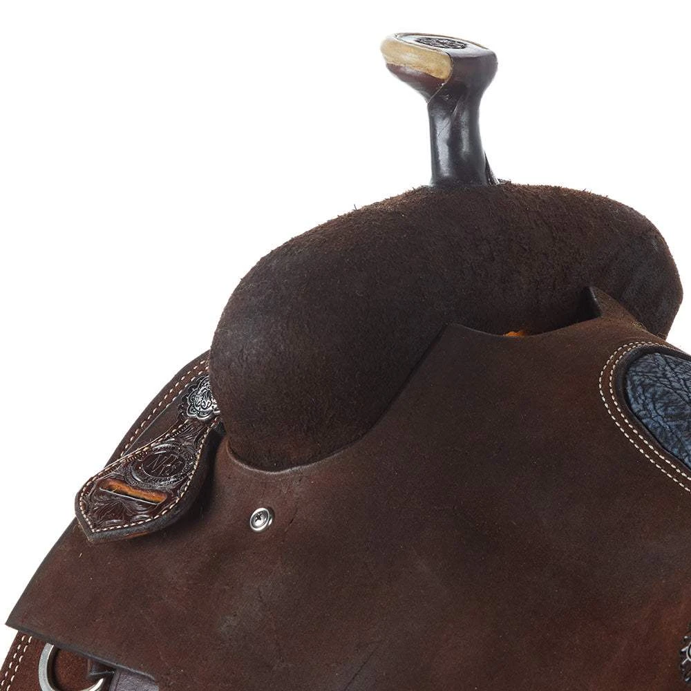 This NRS Competitor Series saddle is built with chocolate Herman Oak leather on our team roper tree. This tree is rawhide covered wood and has a 6 ¾” gullet. The features of this saddle include an inlaid real shark seat, all roughout, pencil roll, square skirt, leather covered stirrups, and a real wool lining.