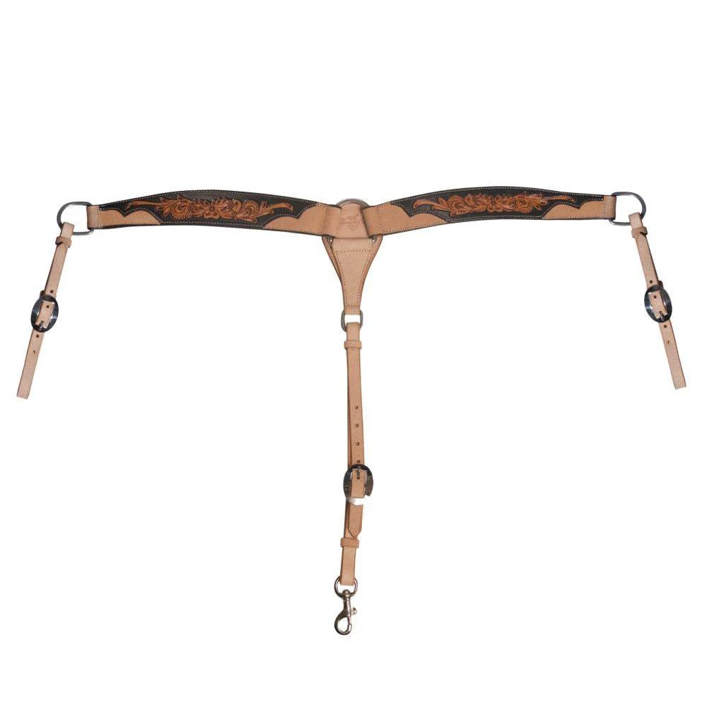 The collection offers the perfect combination of styles by blending a standout rough-out leather with an eye-catching black leather layer adorned with natural floral tooling. In addition, the design is accented with stainless steel hardware, adding to its overall appeal