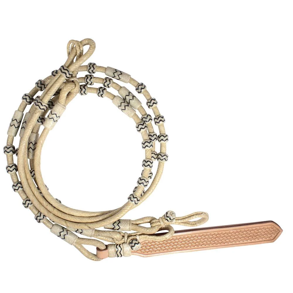Braided rawhide 16 plait Oklahoma style romal reins. Over 8-3/4ft in length including the popper. 48 inch front.