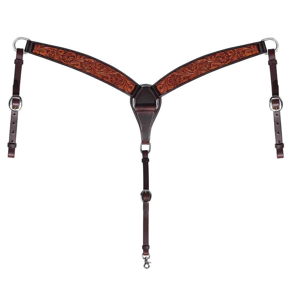 Beautifully hand tooled floral and leaf Prairie Flower design accented with stitched chocolate edge.