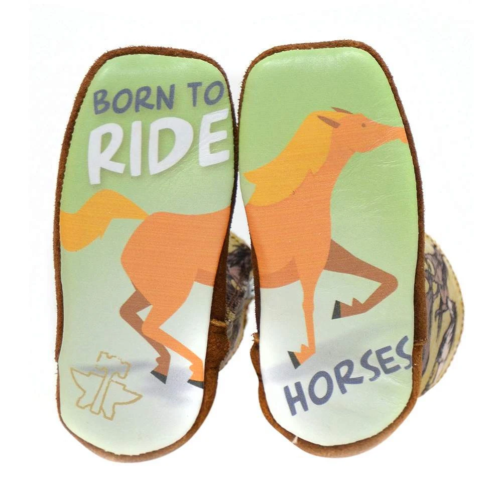 The Born To Ride bootie for that little one is a neutral boot that will go with most outfits. That little one will look wild and free in style with these brown boots. These Roper Footwear leather square toe, zip closure infant booties are adorable.