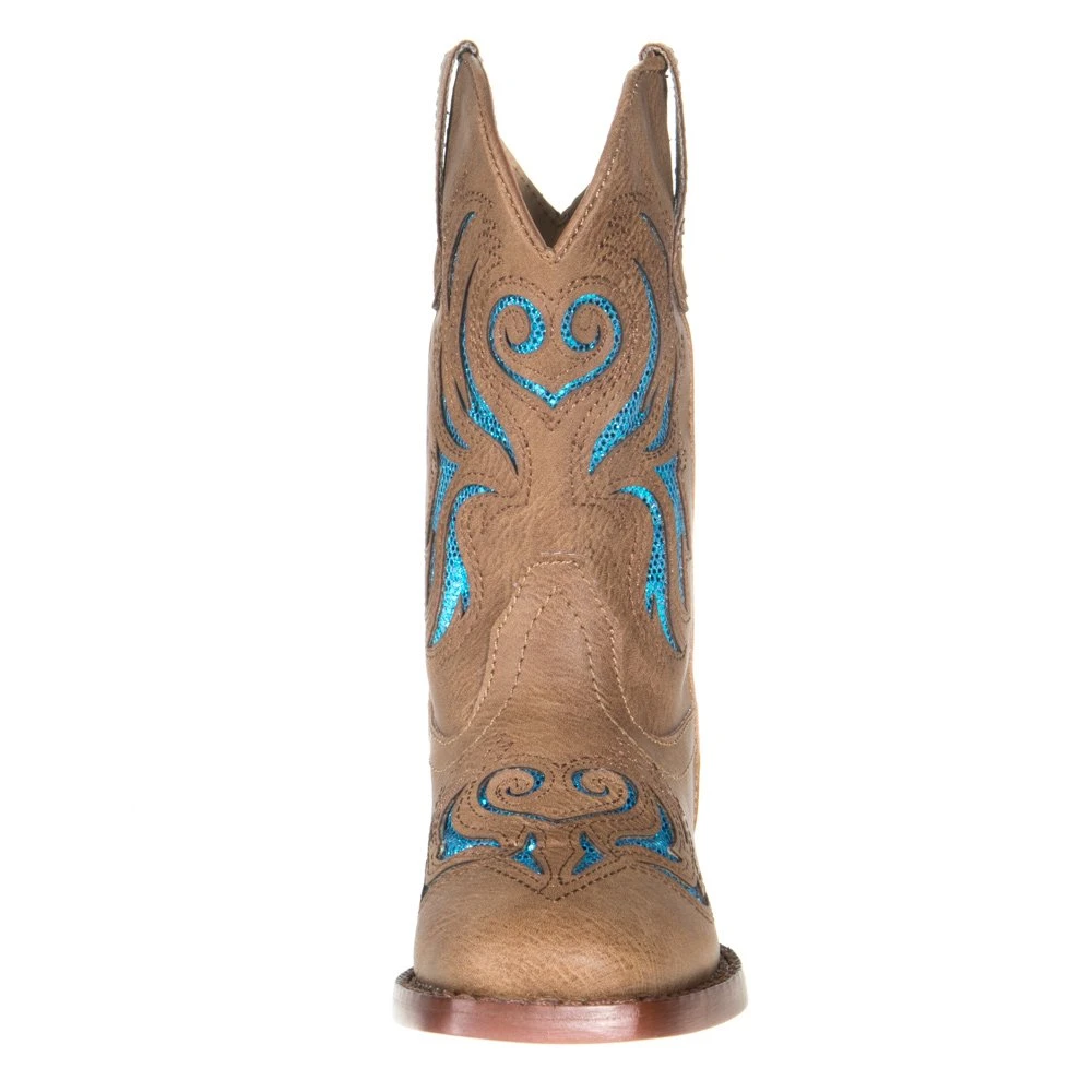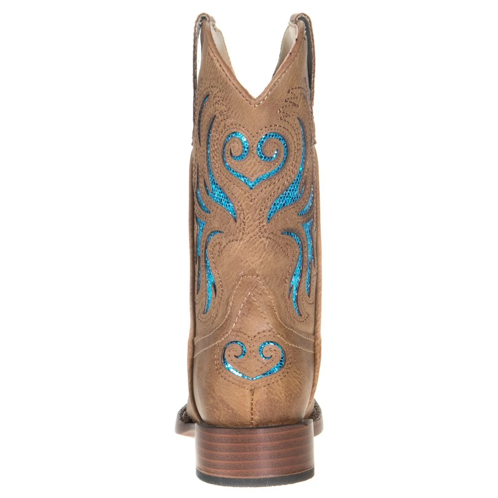 Complete your kids look with our brown boots with turquoise inlay from Roper Footwear.