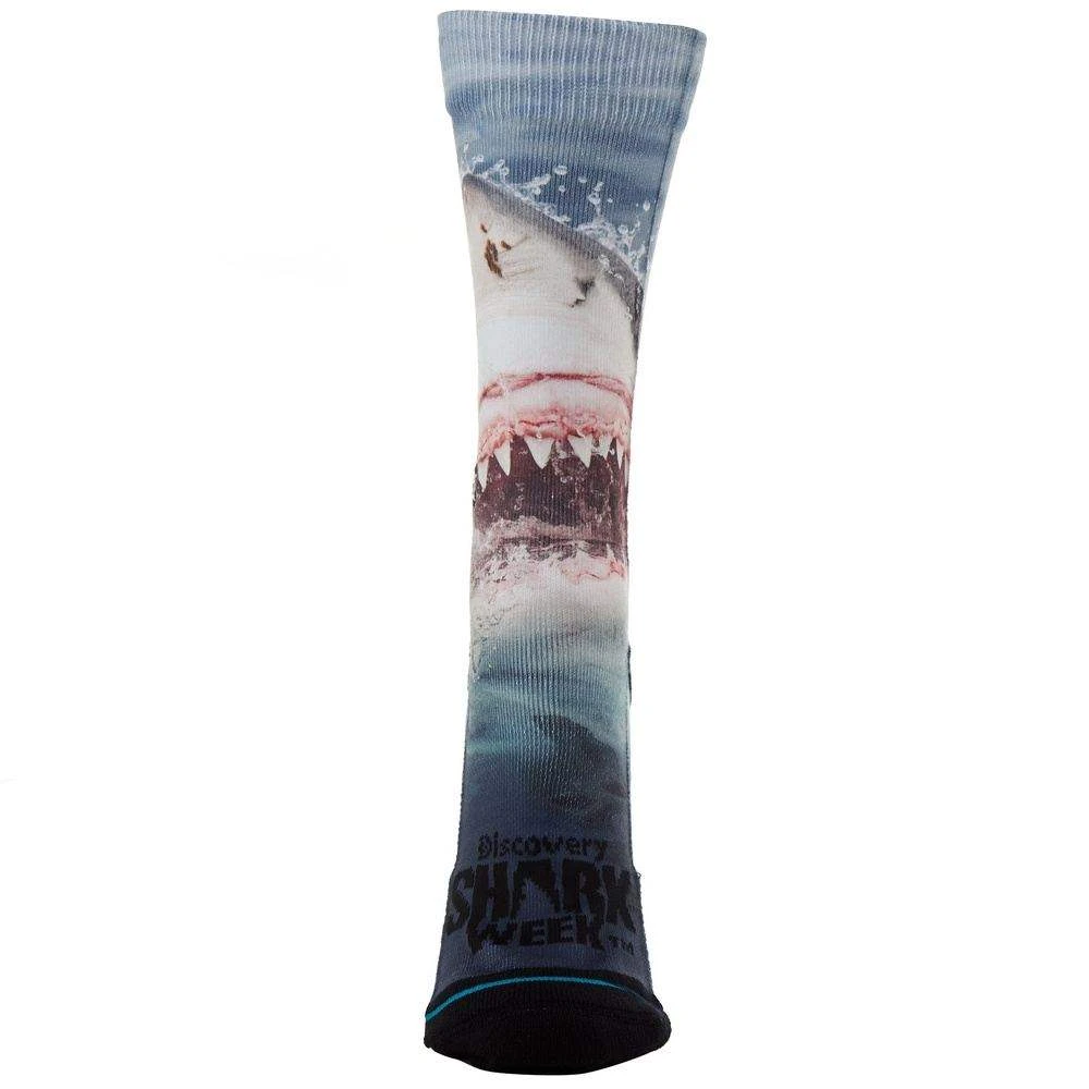 LET’S SEE THOSE PEARLY WHITES. CELEBRATING OVER THREE DECADES OF BREACHES AND BITES, SHARK WEEK MAKES WAVES ON THESE CREW SOCKS.