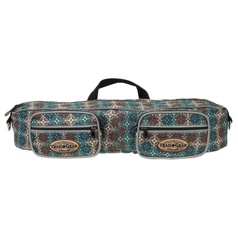 Built to withstand the demands of the trail, this premium quality cantle bag is crafted from thick, durable 1,680D polyester with a weather-resistant polyurethane coating for dependable performance. Grommets are precisely placed to ensure secure attachment to the saddle. With lots of storage in a compact bag, this design features two front pockets perfect for smaller items, waterproof zippers that keep contents dry and protected and reflective piping for added visibility. The padded main compartment provides added protection to your belongings. Great for keeping lead ropes, rain gear, first aid kit, cameras, cell phones and more close at hand and organized. Main compartment measures 21in L x 5.75in W x 4in H; Front pockets measure 6in L x 2in W x 3.5in H. 15502