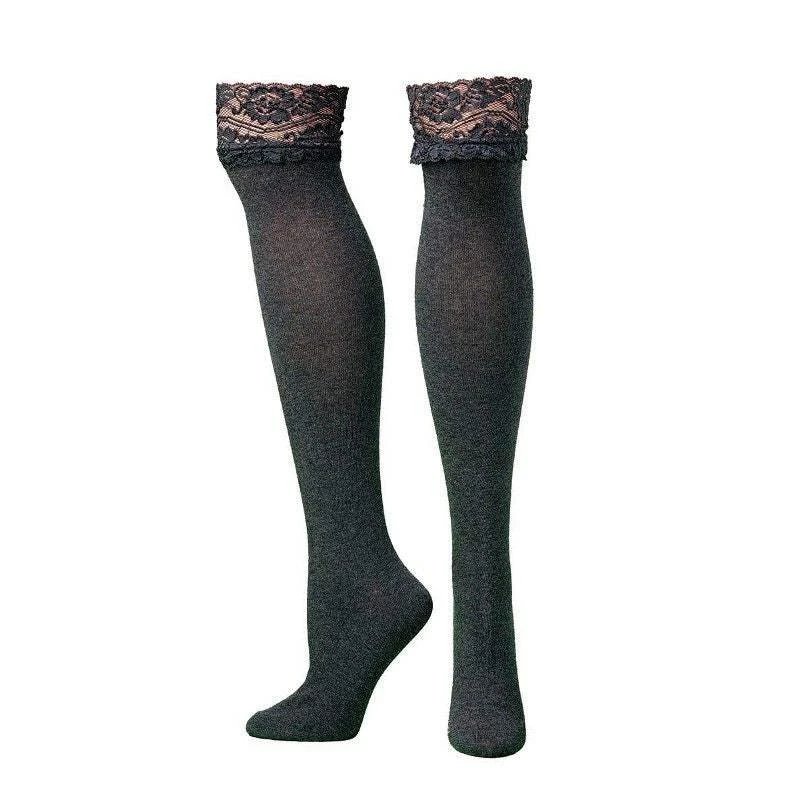 Dress up your boots with these Blazin Roxx Grey Lace Top Boot Socks! These grey socks showcase a matching grey lace top to add some spark. The trendy knee high socks should sit at the knee, and features an bit of stretch and elastic to allow for your socks to stay in place. Made from 70% cotton, 27% polyester, 2% spandex, and 1% rubber.